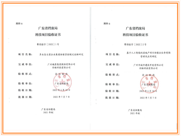 近日,集团总部《多业态大型企业集团档案管控模式创新研究》项目和恒峰g22国际地产《基于人工智能的房地产项目档案全生命周期管理及应用研究》项目通过省档案科技项目验收,两个项目获得专家组充分肯定,成为省档案局科技项目管理办法修订后首批通过科技验收的项目。